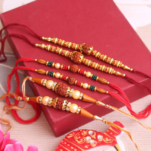 The memorable occasion of Raksha Bandhan is back again. Surprise of brothers of yours with this uniquely designed set of 6 Rakhis. Crafted with colourful beads and pearls that give it a complete awesome look and Rudraksha Beads are intricately embedded in these Rakhis that makes the occasion more auspicious.